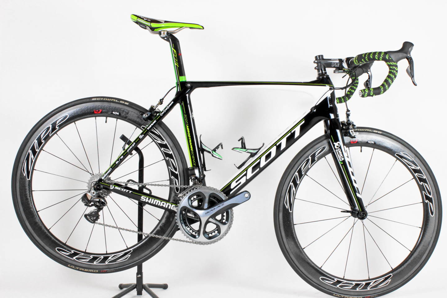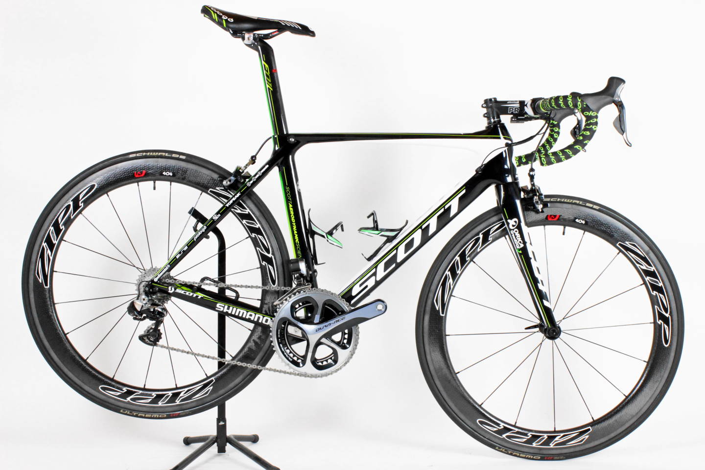 | This is one of Wes Sulzberger's Team Orica-Greenedge 2013 Scott FOIL Team Issue's for sale. The bike is a size 54 that has been lightly used and is unmarked. | ||||